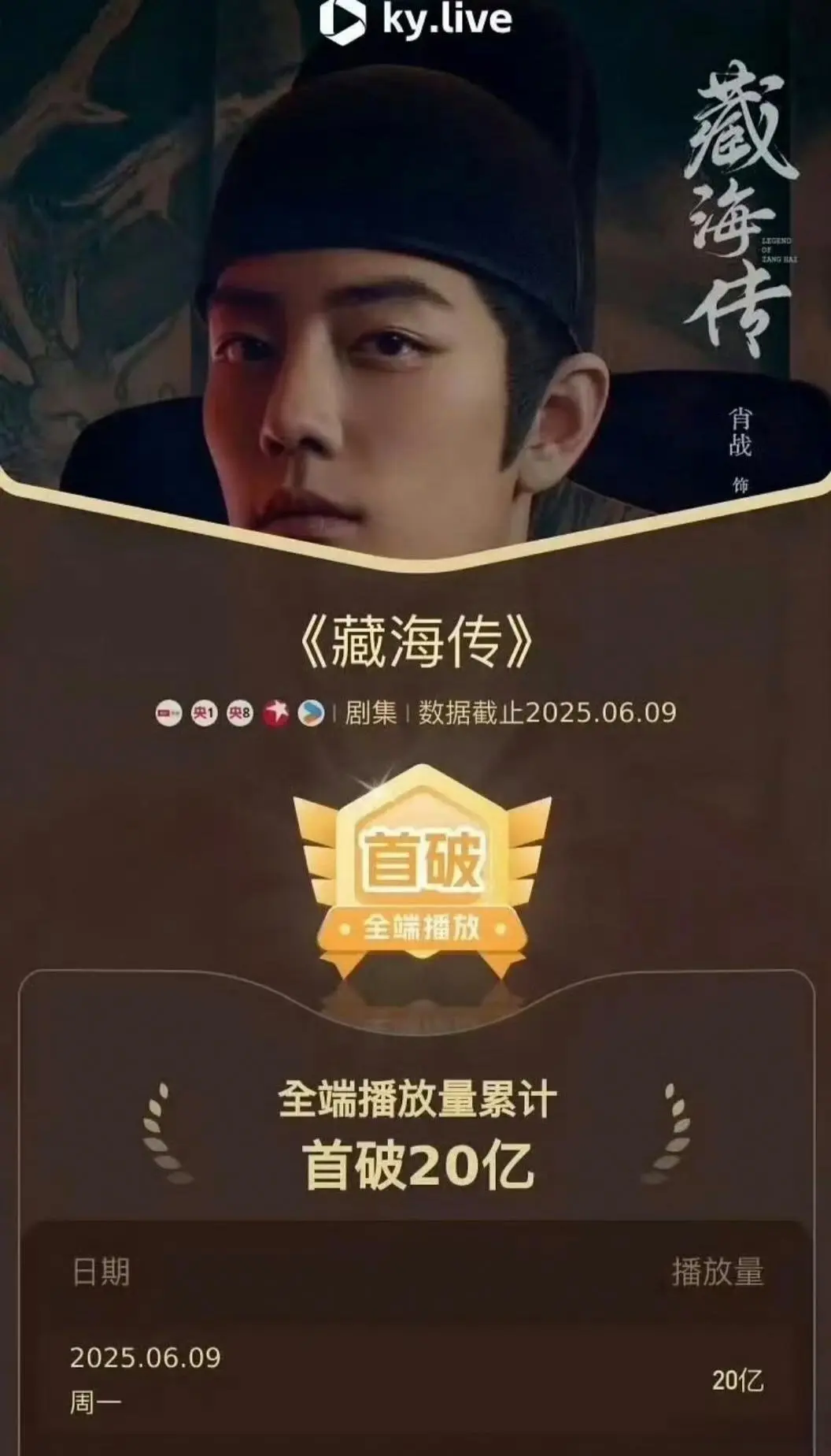 截至6月12日,该剧在酷云平台的全端播放量累计突破20亿,集均播放量达到5000万,创下优酷平台历史纪录。该剧单日最高播放量突破1.18亿,连续6天单日破亿,覆盖用户超4.2亿人次。云合集均3200万,灯塔集均4840.9万,多维度数据均位列2025年剧集前列。而这一成绩的达成仅用时24天,且是在超点结束、多平台新剧分流的情况下实现的。《藏海传》显示出极强的市场韧性和观众黏性。